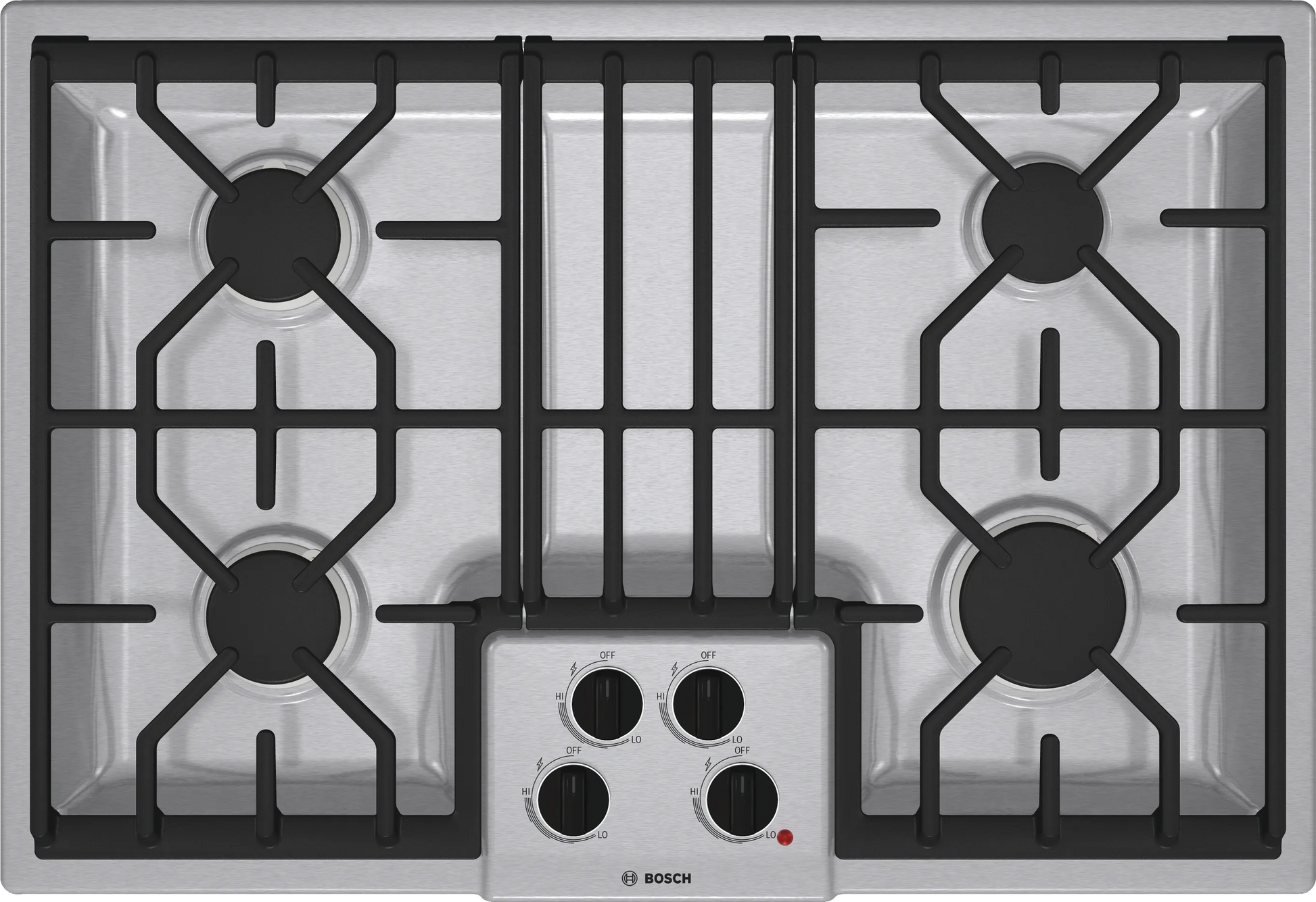 this Bosch 500 Series NGM5054UC gas cooktop's 4 burners deliver 5,500-16,000 BTUs of heat, making it easy to prepare a variety of dishes quickly and bring liquids to a rapid boil. The OptiSim 400-BTU simmer setting gently heats soups and sauces.