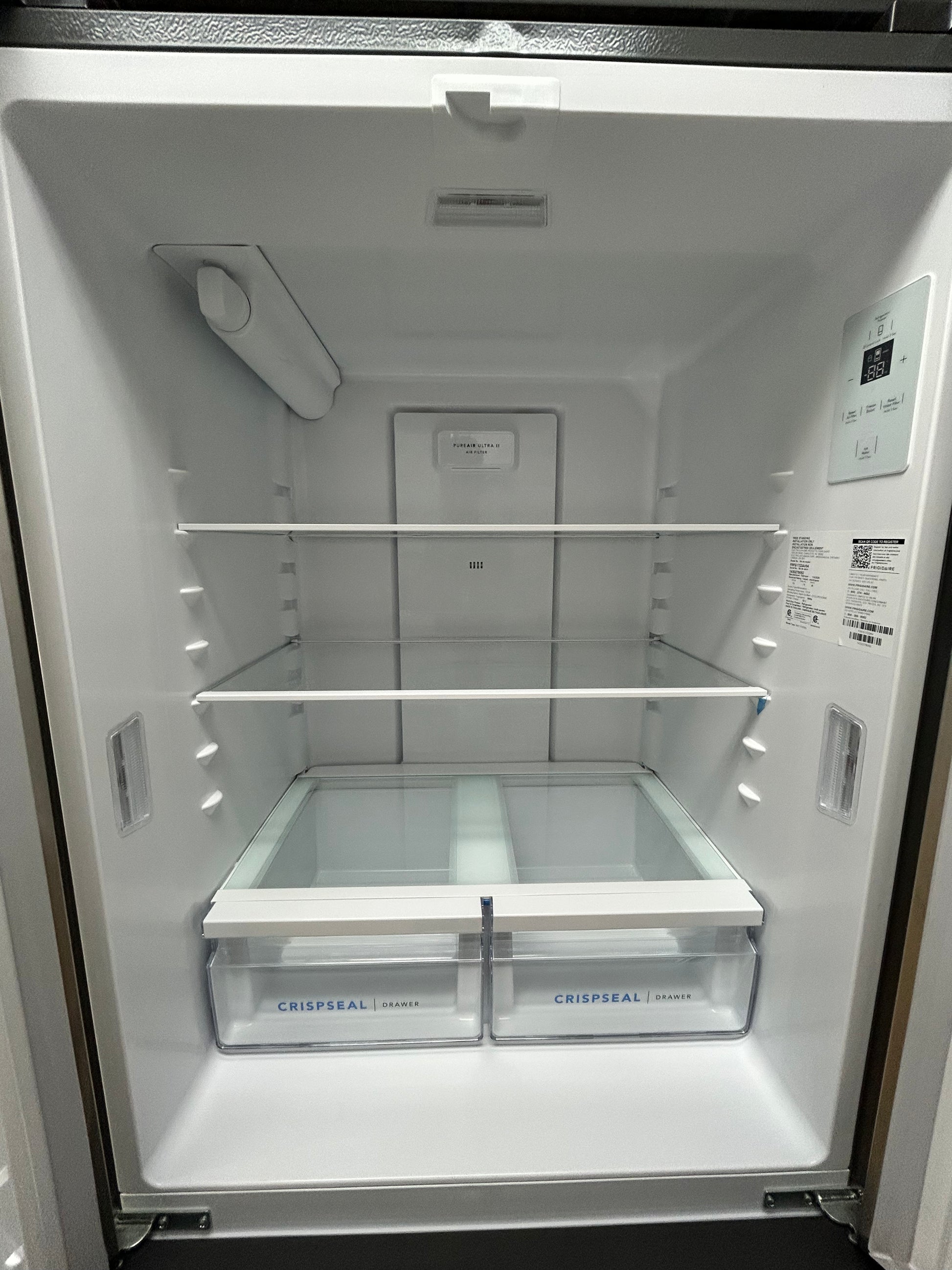This 31.5" Frigidaire French door refrigerator helps keep fruits and vegetables fresh for longer with our CrispSeal crispers, which block out dry air from entering your crisper.