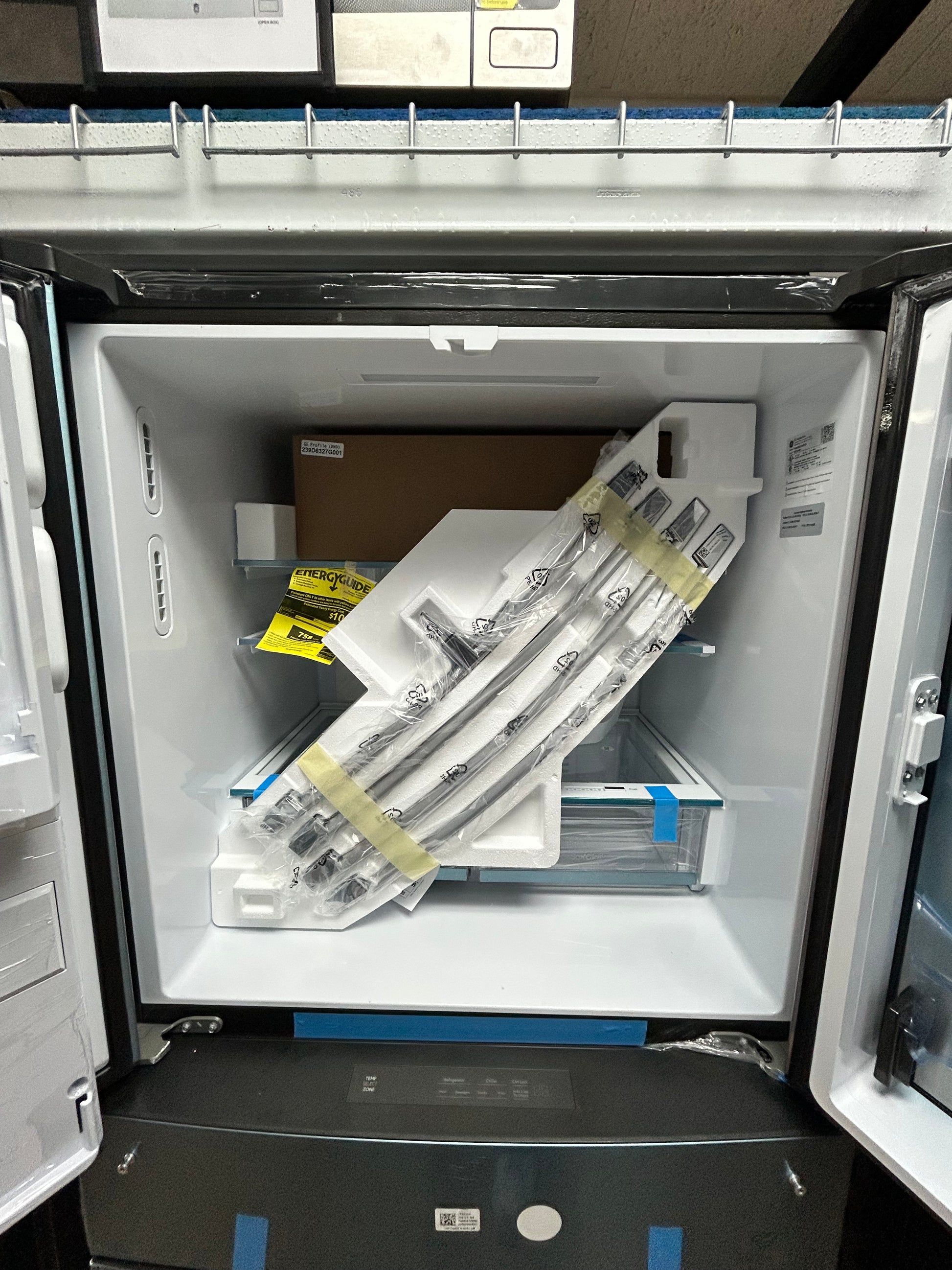 Elevate your kitchen with the Frigidaire 36 Inch Counter-Depth French Door Refrigerator, offering a sleek built-in look and spacious storage solutions.