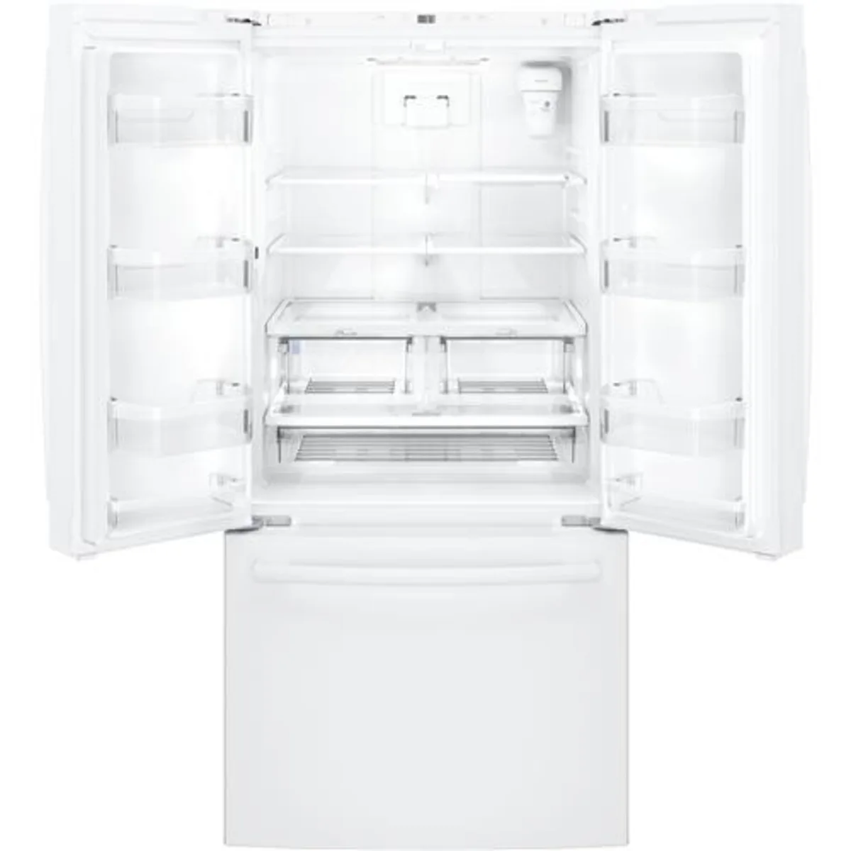 GE - GWE19JGLWW - 33 Inch Counter Depth French Door Refrigerator with 18.6 cu. ft. Capacity, Spill-Proof Shelves, Humidity-Controlled Drawers, Quick Space Shelf, Shabbos Mode, Icemaker, Internal Water Dispenser, Advanced Water Filtration